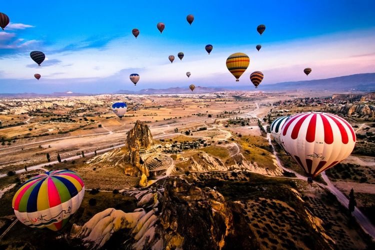 كابادوكيا: معروفة بتكويناتها الصخرية الطبيعية الفريدة ورحلات المنطاد الهوائي